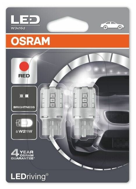 Osram1 OSRAM Комплект ламп W21W 12V 3W W3x16d LEDRIVING standard retrofitкрасныйW21W 2шт.(1к-т) OSRAM 7705R02B