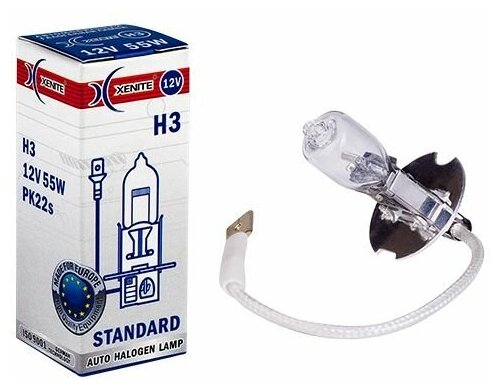 Лампа автомобильная галогенная XENITE H3 (PK22s) STANDARD 12V 55W (кварцевое стекло) (упаковка 1 шт.)