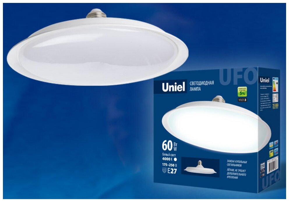 Лампа светодиодная Uniel UFO PLU01WH UL-00004577, E27, UFO, 60 Вт, 4000 К