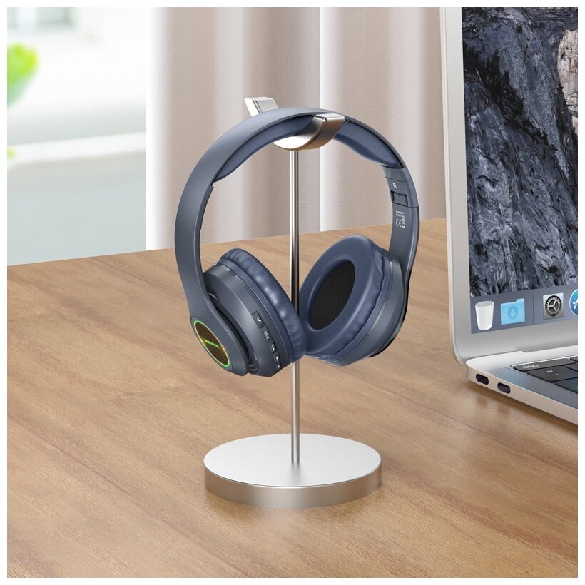 Беспроводные наушники BOROFONE GAME MUSIC BO17//накладные с шумоподавлением /светящиеся с подсветкой/синий