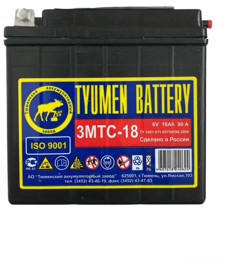 TYUMEN BATTERY 3МТС-18 АКБ Мото 6 В 18 А/ч Тюмень сухой ток 90 140 х 77 х 135 без электролита