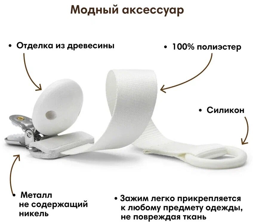 Клипса-держатель для пустышки Elodie Wood - Vanilla White new 1 406 ₽