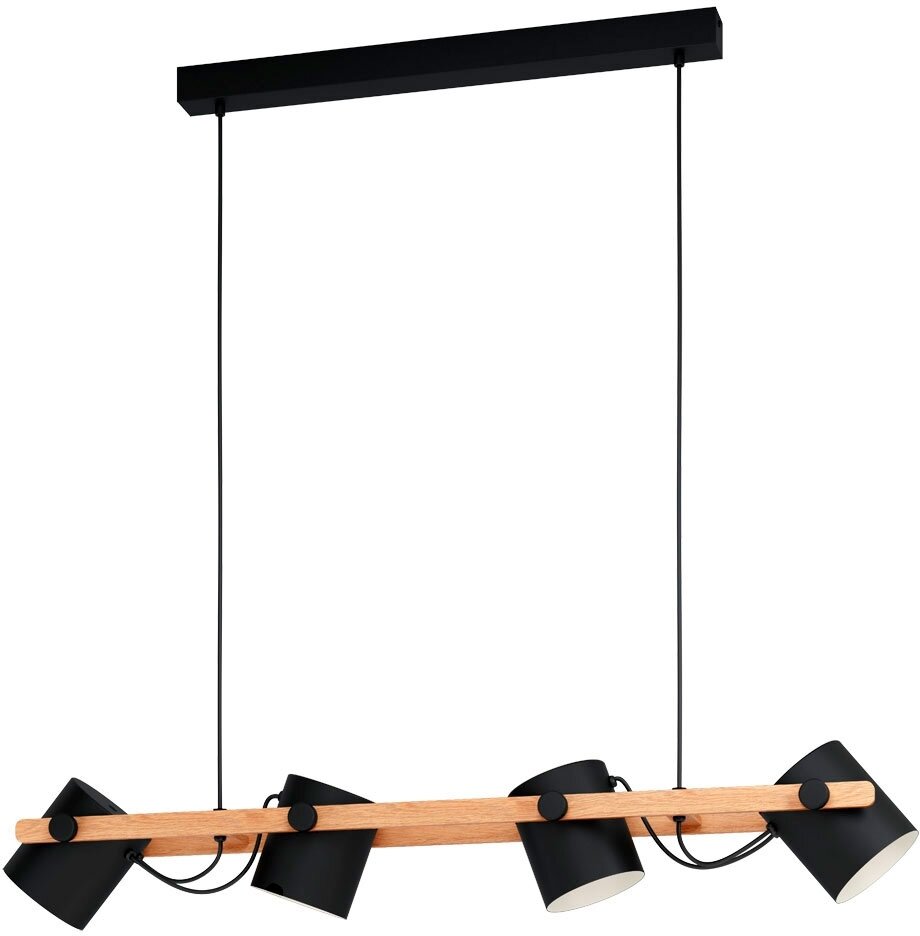 43424 Подвес HORNWOOD, 4х28W (E27), L1100, B180, H1100, сталь, черный, кремовый /дерево, коричневый