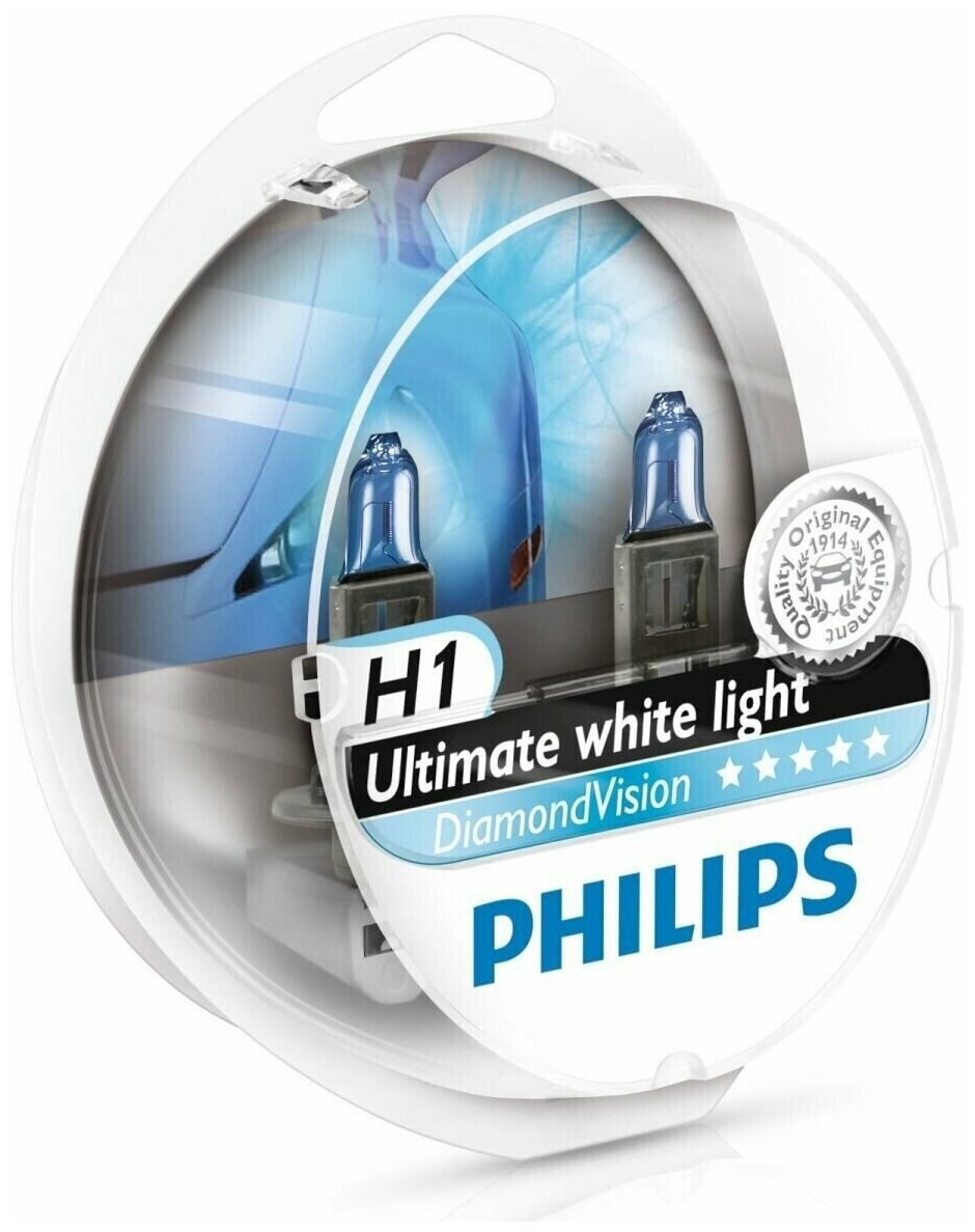 10 цен на Лампа галогенная Philips Diamond Vision H1 (P14,5s) 12V 55W, 12258DVS2, 2 шт