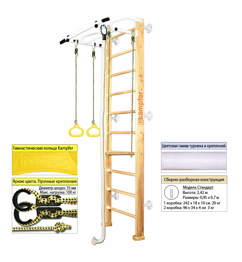 Шведская стенка Kampfer Union Ceiling (№1 Натуральный Стандарт белый турник)