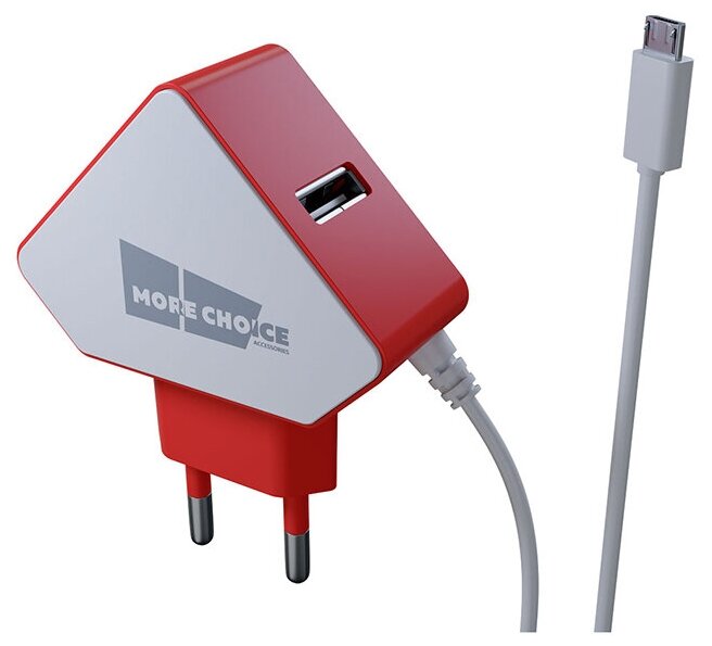 Отзывы на Сетевое ЗУ MoreChoice 2USB 1.5A для micro USB со встроенным кабелем NC42m (White Red)