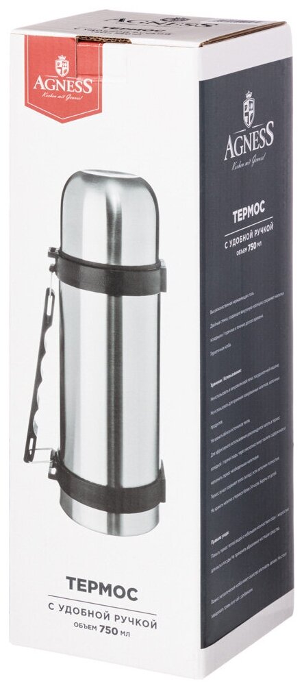 Термос AGNESS универсальный 750 МЛ крышка-чашка, винтовая пробка, узкое горло, колба НЖС информация: