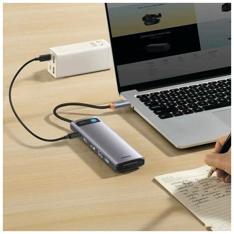 Отзывы на Хаб Baseus Metal Gleam Series 12-in-1 Multifunctional Type-C HUB Docking Station (WKWG020213) HDMIx1 + USB3.1x2 + USB3.0x2 + Type-C3.1x1 + PDx1 + RJ45x1 + SD/TFx1 + DPx1 + 3.5x1