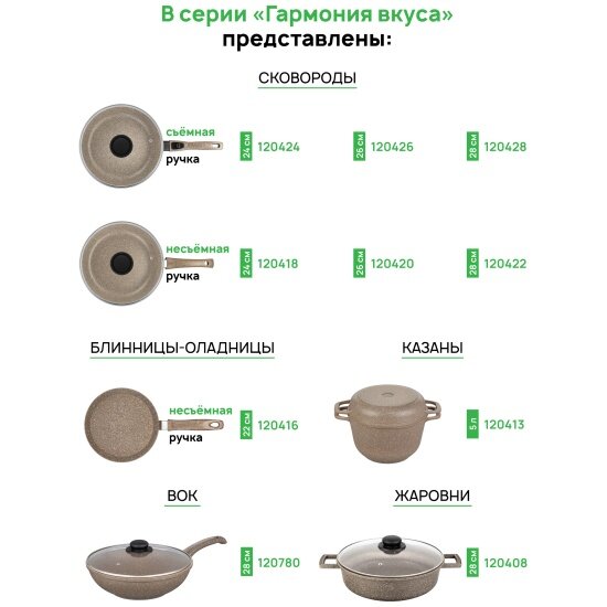| Комплектация | сковорода, стеклянная крышка, съёмная бакелитовая ручка |