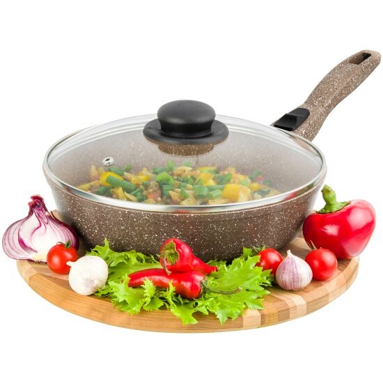 Отзывы на Сковорода глубокая Elan Gallery Гармония вкуса "Коричневый мрамор", с крышкой, со съёмной ручкой, 24 см