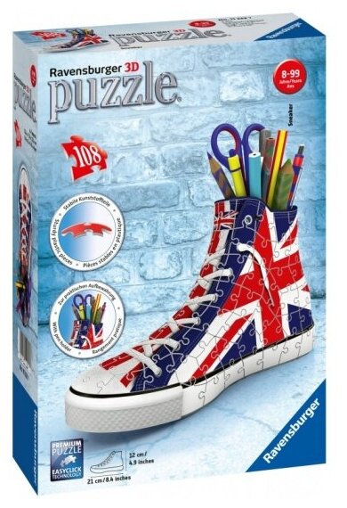Ravensburger. Пазл карт. 3D 108 Подставка для карандашей кроссовок Юнион Джек арт. 11222