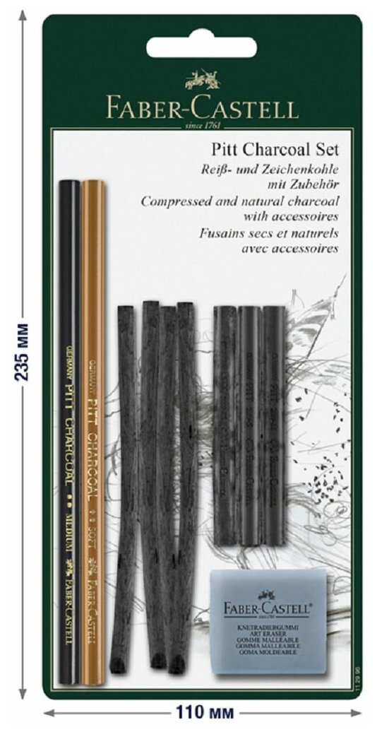 Набор угля и угольных карандашей Faber-Castell "Pitt Charcoal" 10 предметов, блистер, 1 шт информация:
