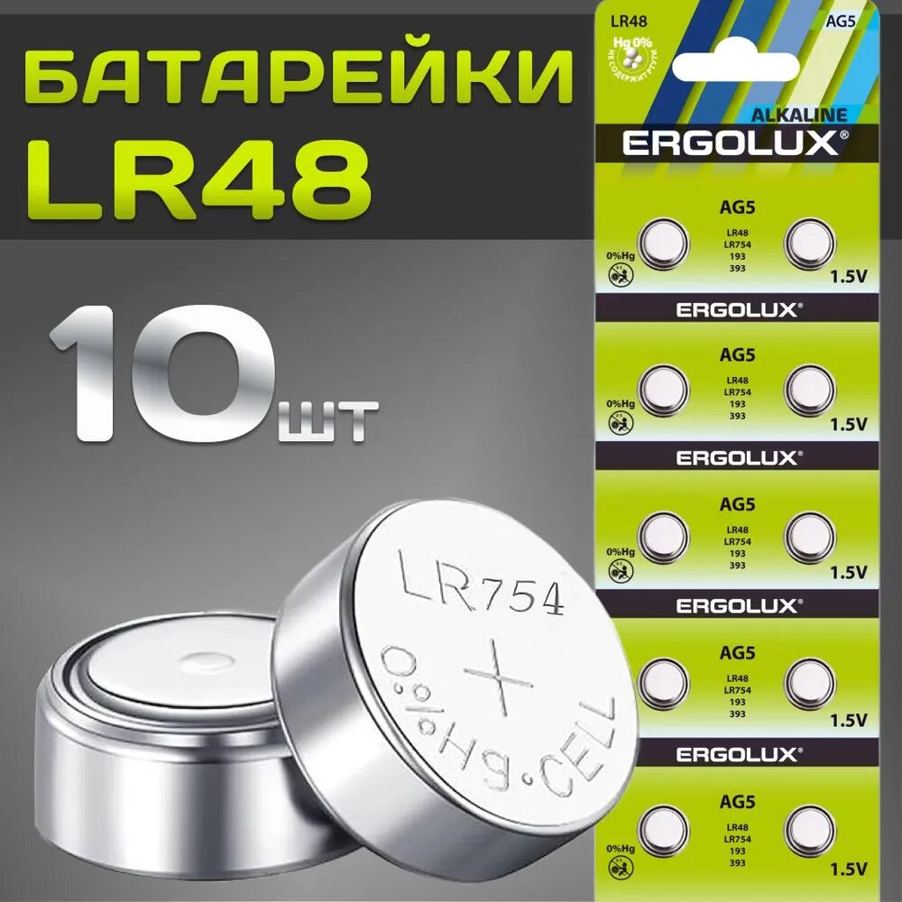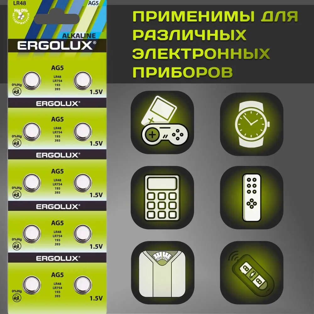 Батарейка для часов Ergolux AG 5 BL-10 LR48 /LR754 /193 /393 информация:
