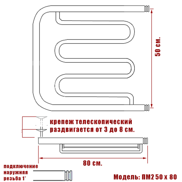 Водяной полотенцесушитель Ника ECON ПМ-2 50/80 с полкой информация: