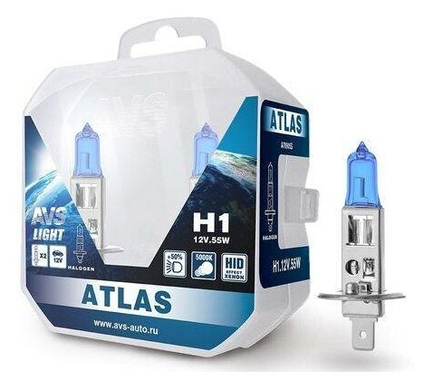 Автолампа Atlas AVS 12V 55Вт H1 5000К дальнего света 2шт. боск