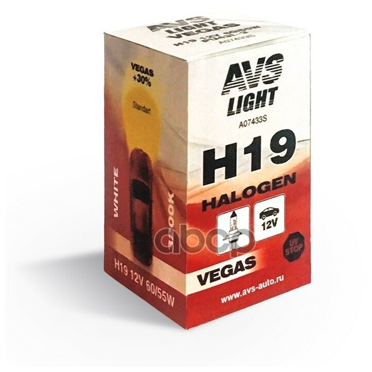 Лампа автомобильная галогенная AVS Vegas A07433S H19 60/55W 12V 1 шт. информация: