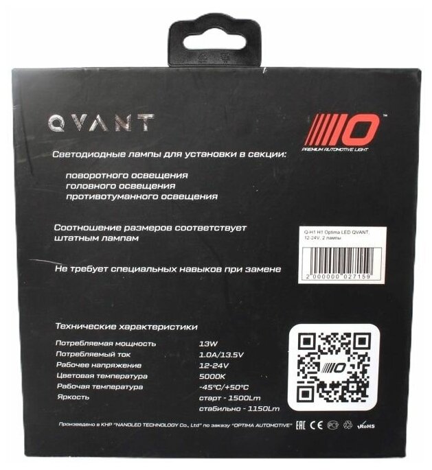 Светодиодные лампы Optima Qvant H1 информация: