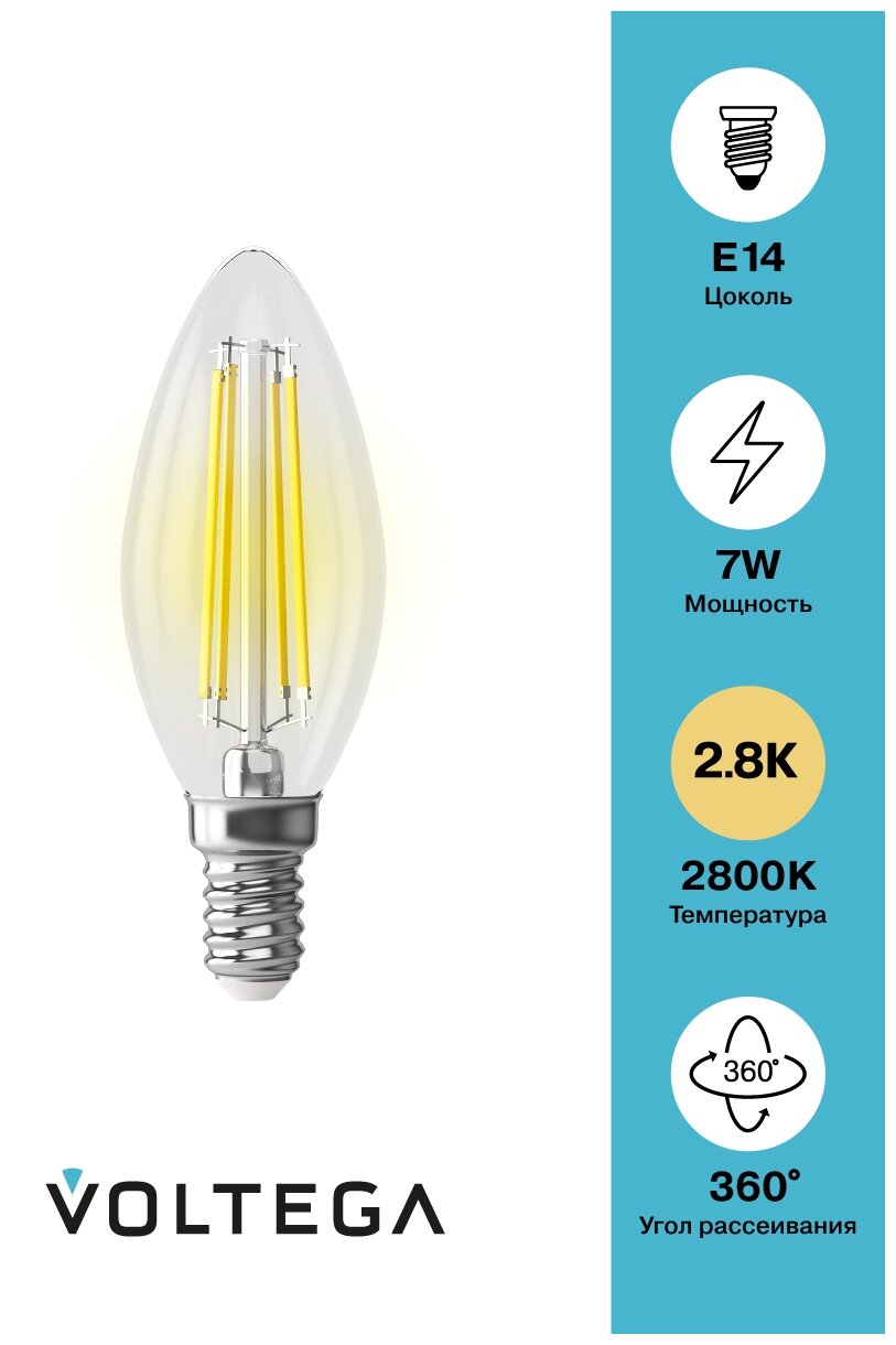 Лампа светодиодная Voltega E14 6,5W 2800K прозрачная VG10-C35E14warm9W-F 7134 информация:
