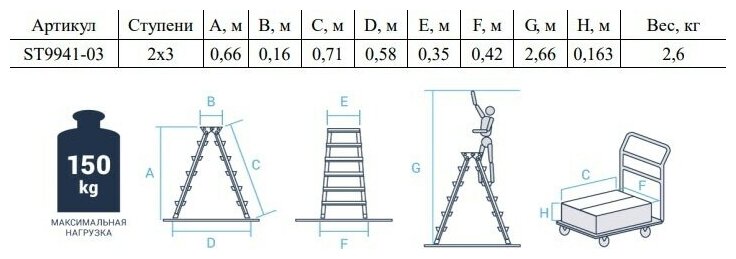 Лестница-стремянка алюминиевая двухсторонняя 66 см STARTUL (ST9941-03) информация: