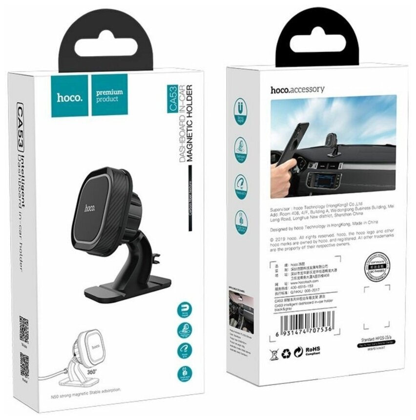 Автомобильный держатель магнитный hoco. CA53 Intelligent на приборную панель - черный информация: