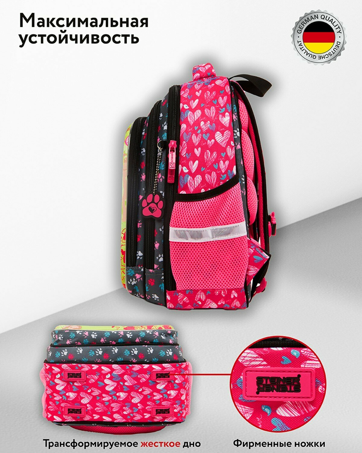 10 цен на Школьный рюкзак для девочки Steiner / ранец / портфель, полужёсткий, ортопедический, 3 отделения, фирменный брелок в подарок