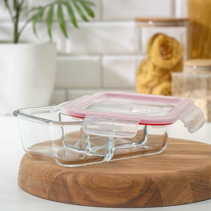10 цен на Доляна Контейнер из жаропрочного стекла Доляна «Клик», 3-х секционный: 270 мл, 270 мл, 350 мл, 21×16×7см, с крышкой