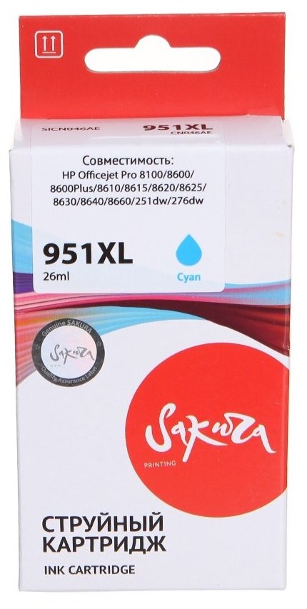 Отзывы на Sakura Printing Струйный картридж Sakura CN046AE (№951XL Cyan) для HP, голубой, 26 мл., 1500 к.