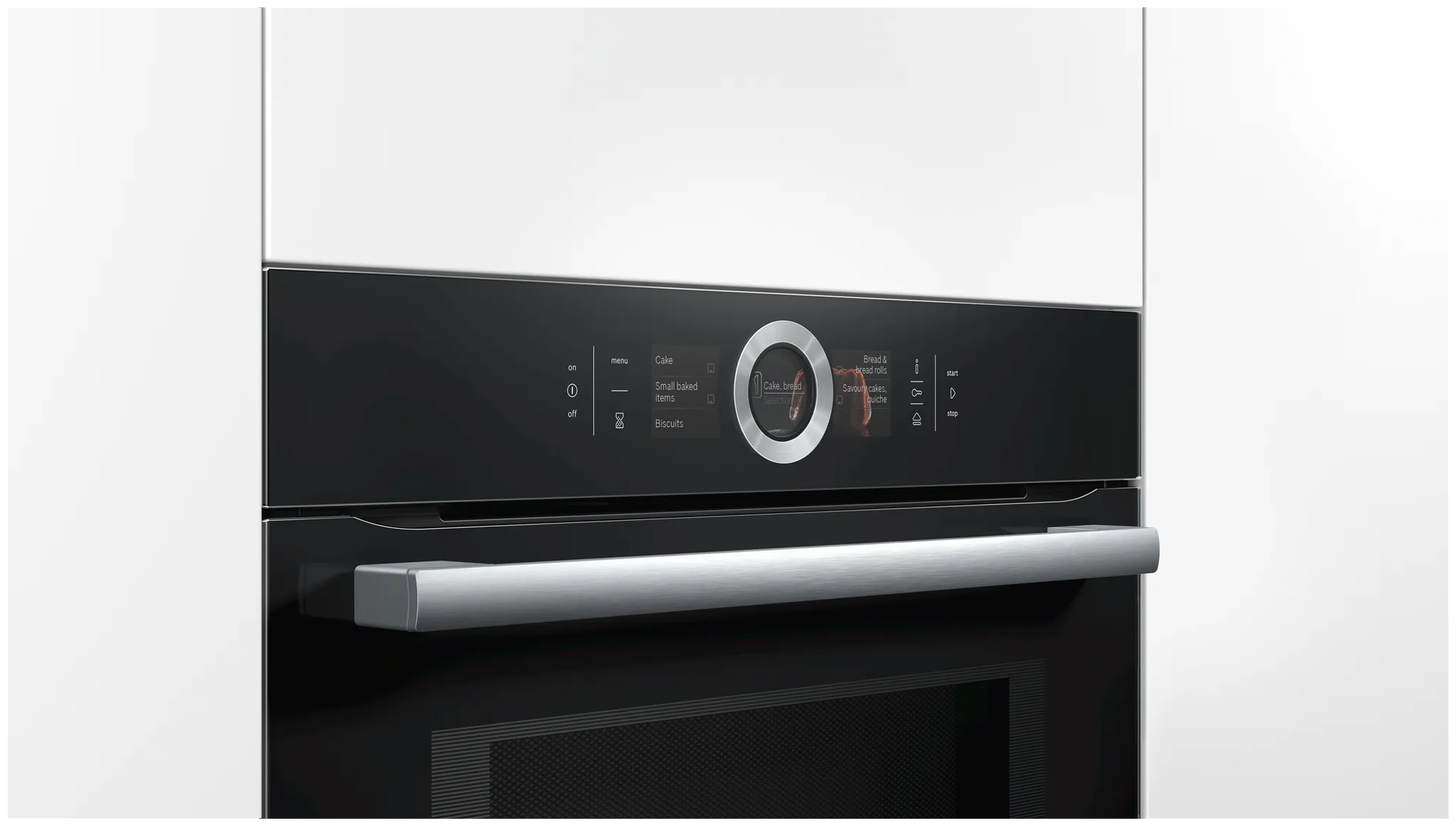 Встраиваемая электрическая духовка Bosch Serie 8, с микроволнами и паром, черный, 14 режимов + комбинированные режимы, микроволны до 800Вт, функция добавление пара AddedSteam, 4-слойное остекление, 5,7" цветной TFT-дисплей с сенсорным управлением, RotaryC