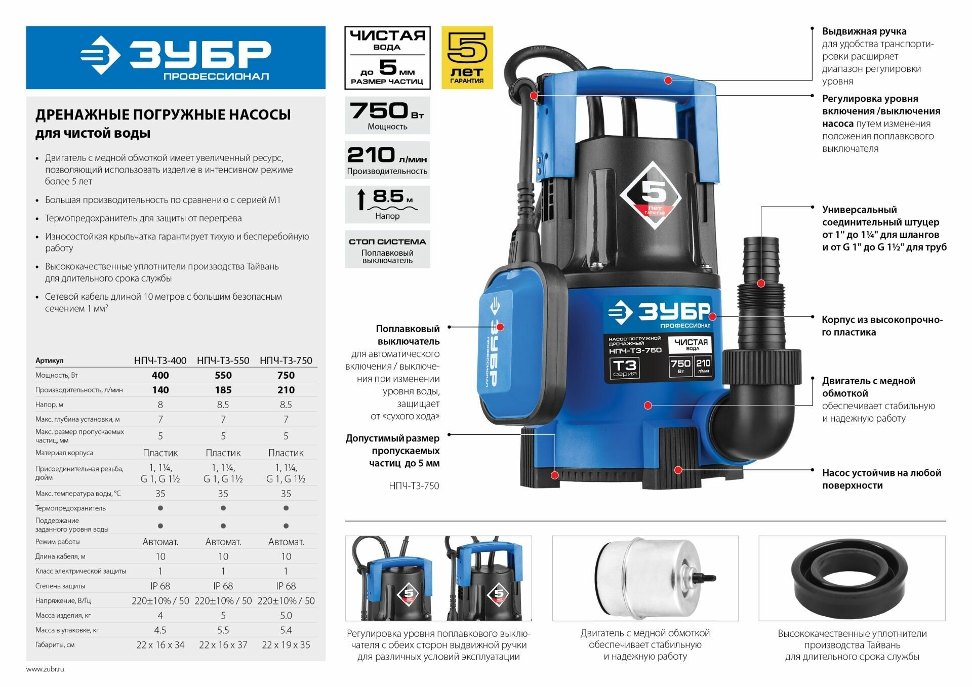 Зубр Насос дренажный Зубр НПЧ-Т3-750 информация: