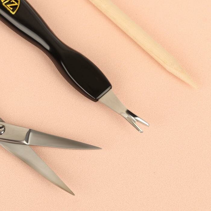 Набор маникюрный, 5 предметов, на блистере, цвет чёрный/серебристый/бежевый, SIS-57 (1 шт.) информация: