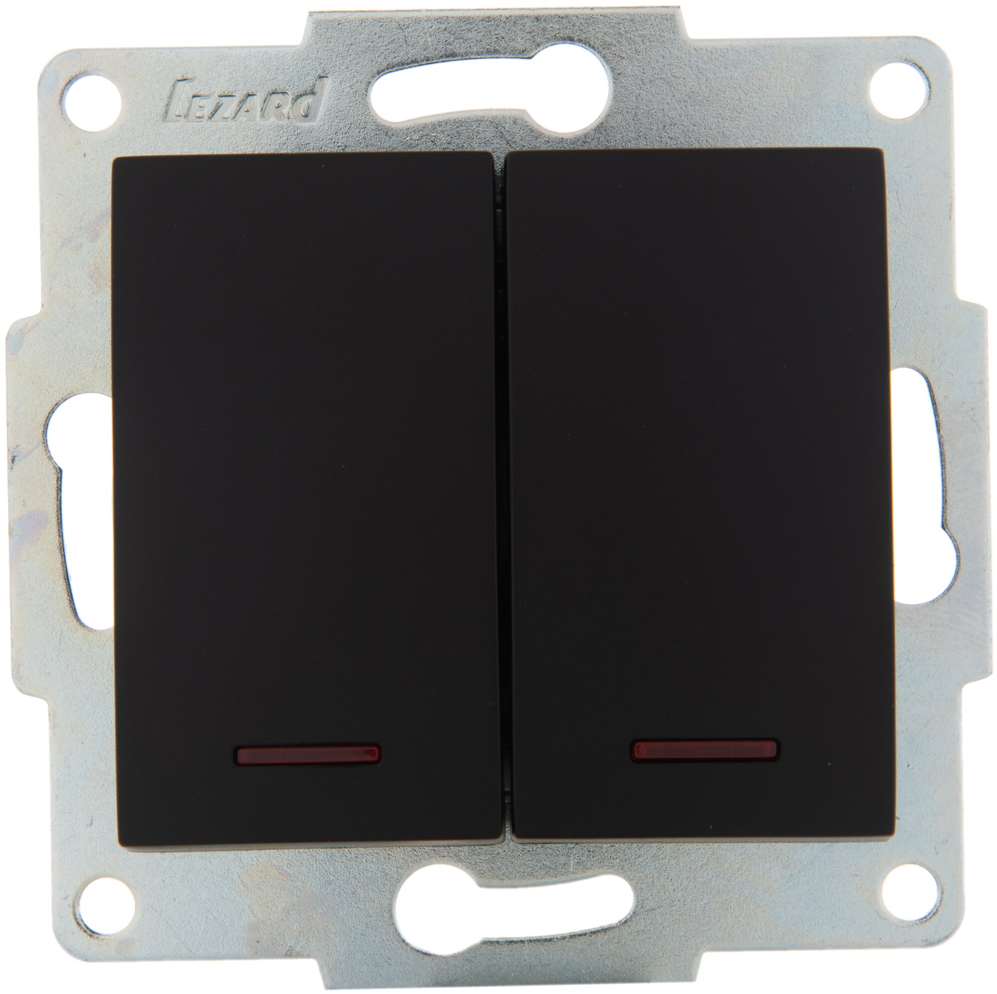 Выключатель 2-клавишный Lezard Karina, встраиваемый, с подсветкой, черный бархат