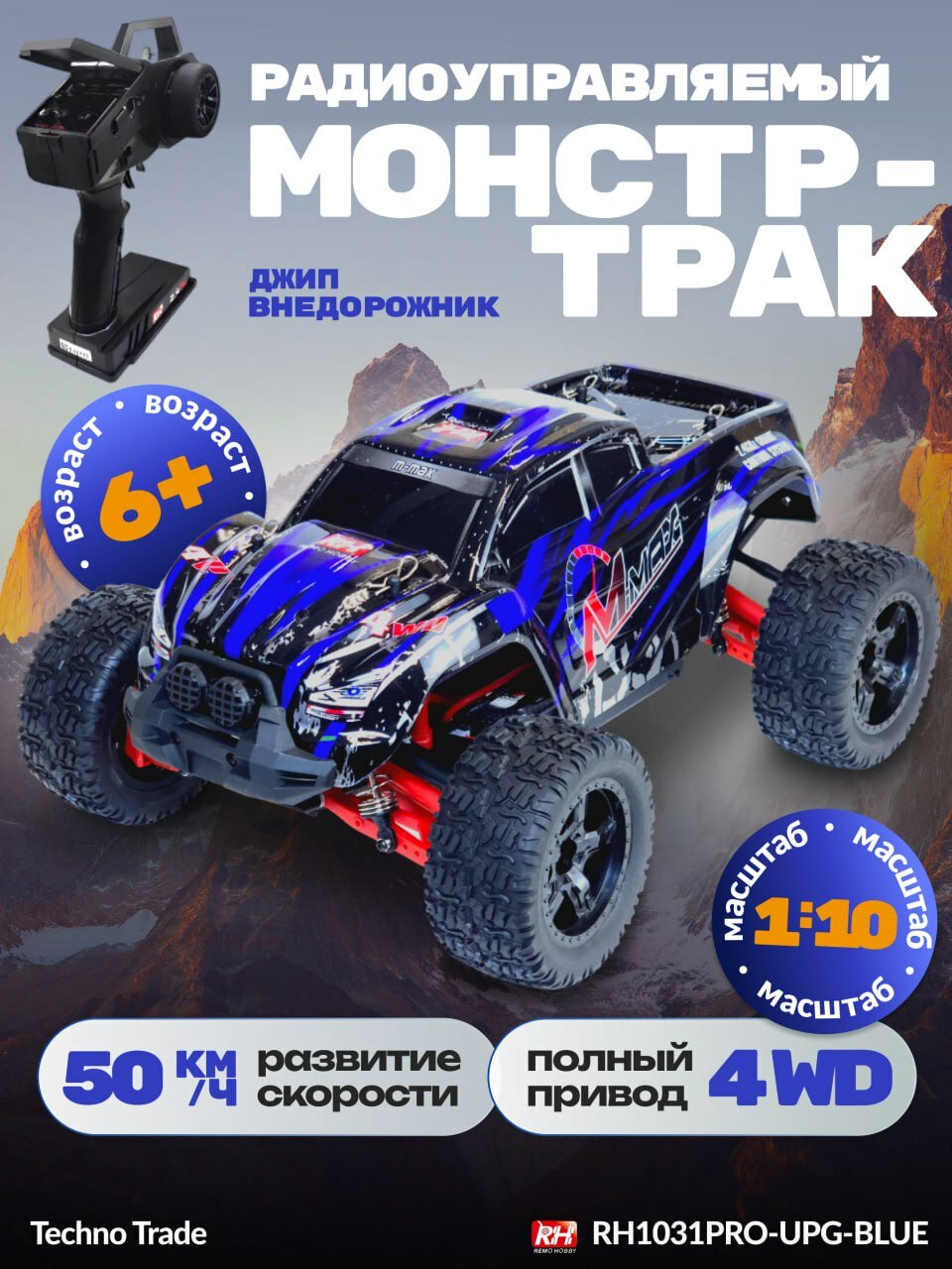 10 цен на Радиоуправляемый монстр Remo Hobby MMAX PRO UPGRADE 4WD 2.4G 1/10 RTR-RH1031PRO-UPG - Синий