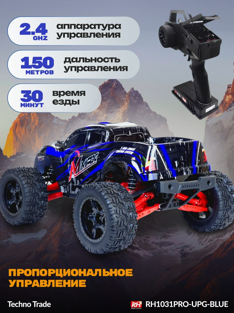 Радиоуправляемый монстр Remo Hobby MMAX PRO UPGRADE 4WD 2.4G 1/10 RTR-RH1031PRO-UPG - Синий информация: