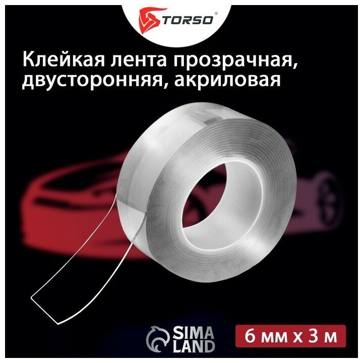 10 цен на Клейкая нано лента TORSO, прозрачная, двусторонняя, акриловая 6 мм х 3 м