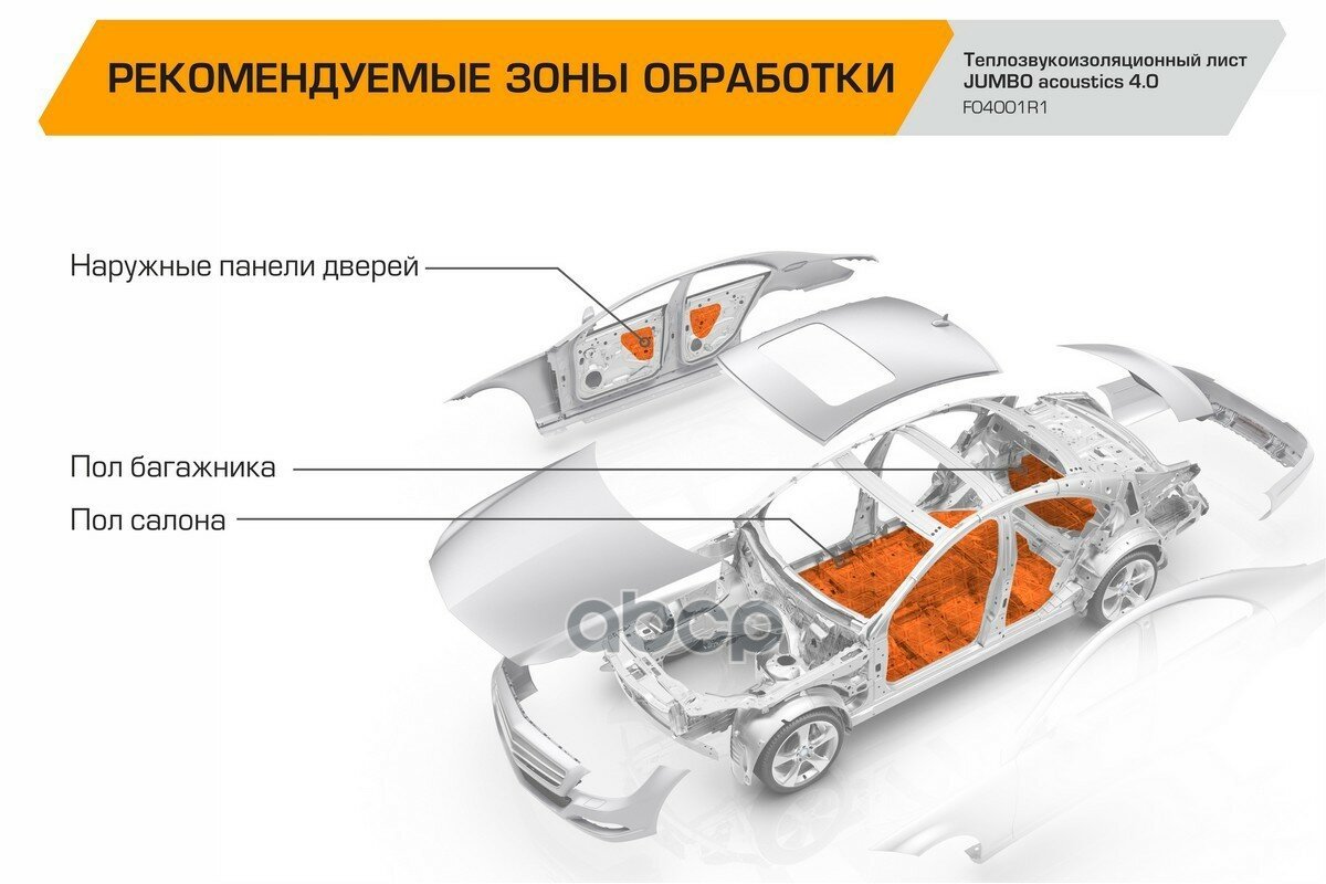 Теплозвукоизоляционный материал для шумоизоляции автомобиля JUMBO acoustics 4.0, 1 шт., F04001R1