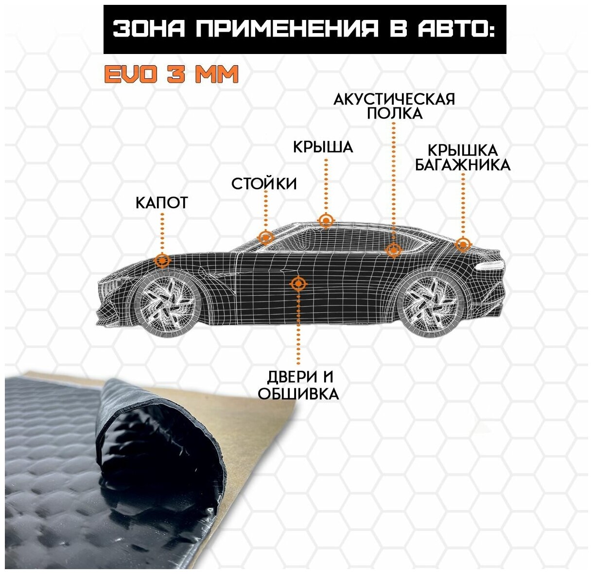 Шумоизоляция для автомобиля - Шумология EVO 3.0 - 10 листов 25 на 37 см. Виброизоляция - 3 мм информация: