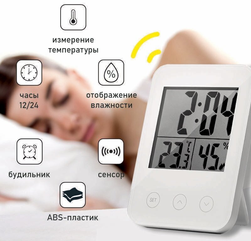Сенсорный термогигрометр Halsa HLS-E-101 с часами и функцией будильника 1 110 ₽