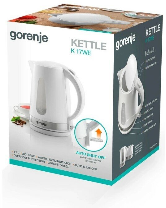 Чайник электрический Gorenje K17XG белый, объём 1.7л, мощность 2200Вт, материал корпуса: металл/пластик