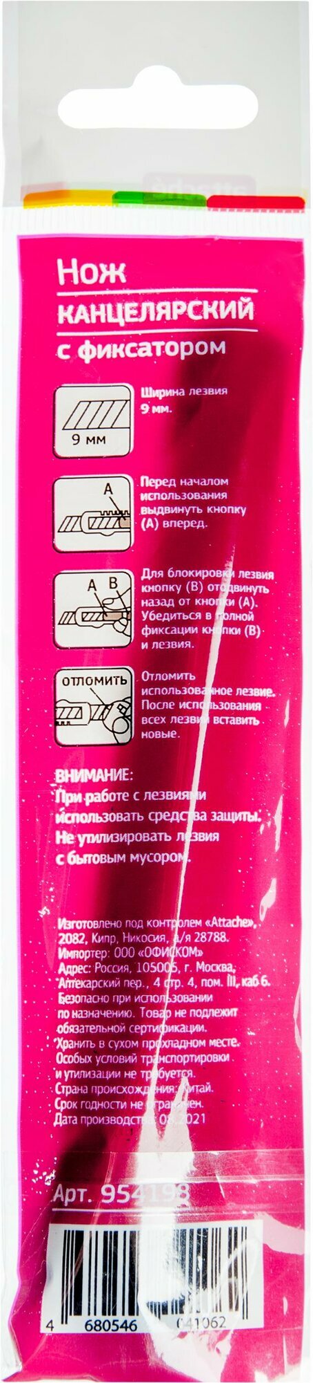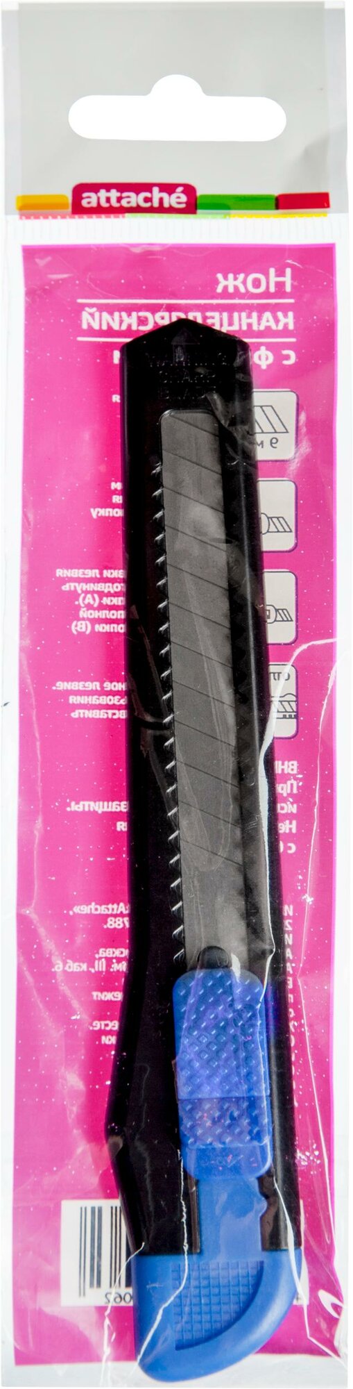 Нож канцелярский 9мм Attache чёрный, цв. фиксатора в ассорт. информация: