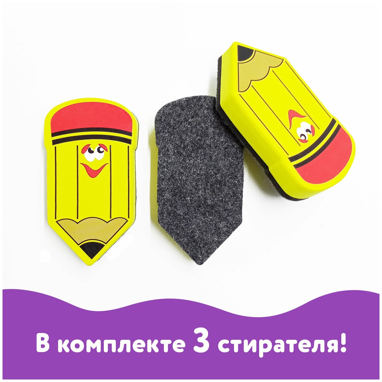 Стиратели магнитные юнландия для магнитно-маркерной доски "Карандаш", 55х100 мм, комплект 3 ШТ. информация: