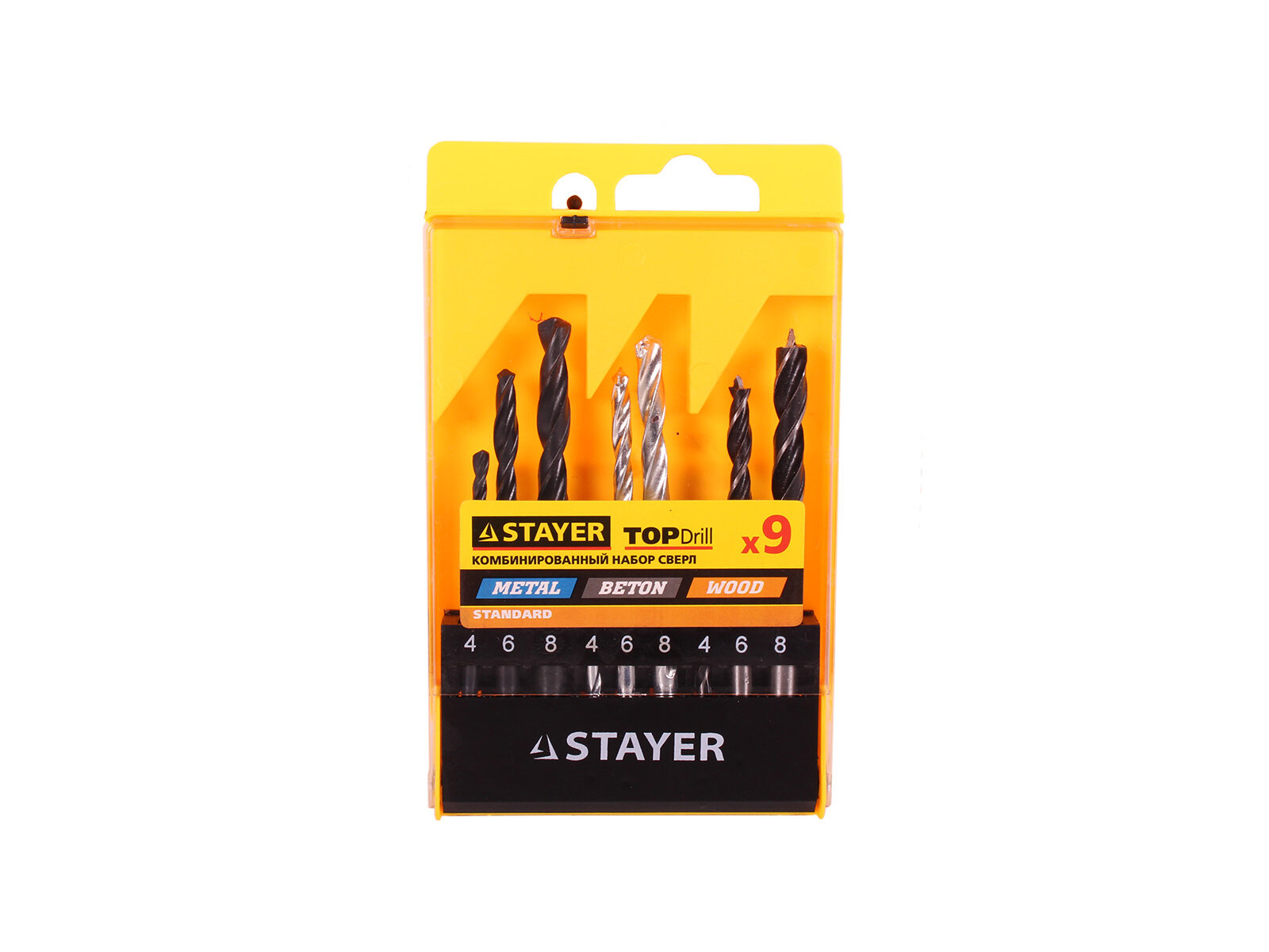Набор STAYER STANDARD: Сверла комбинированные, дерево (4-6-8мм), металл (4-6-8мм), бетон (4-6-8мм), 9 предметов