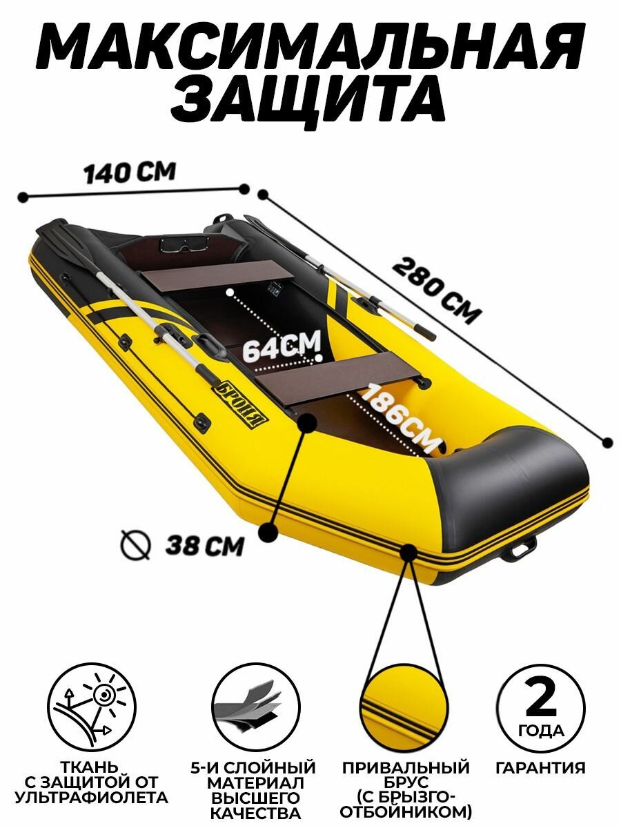 Лодка ПВХ БРОНЯ-280СК под мотор, 2х-местная для рыбалки, для охоты, для отдыха, надувная информация: