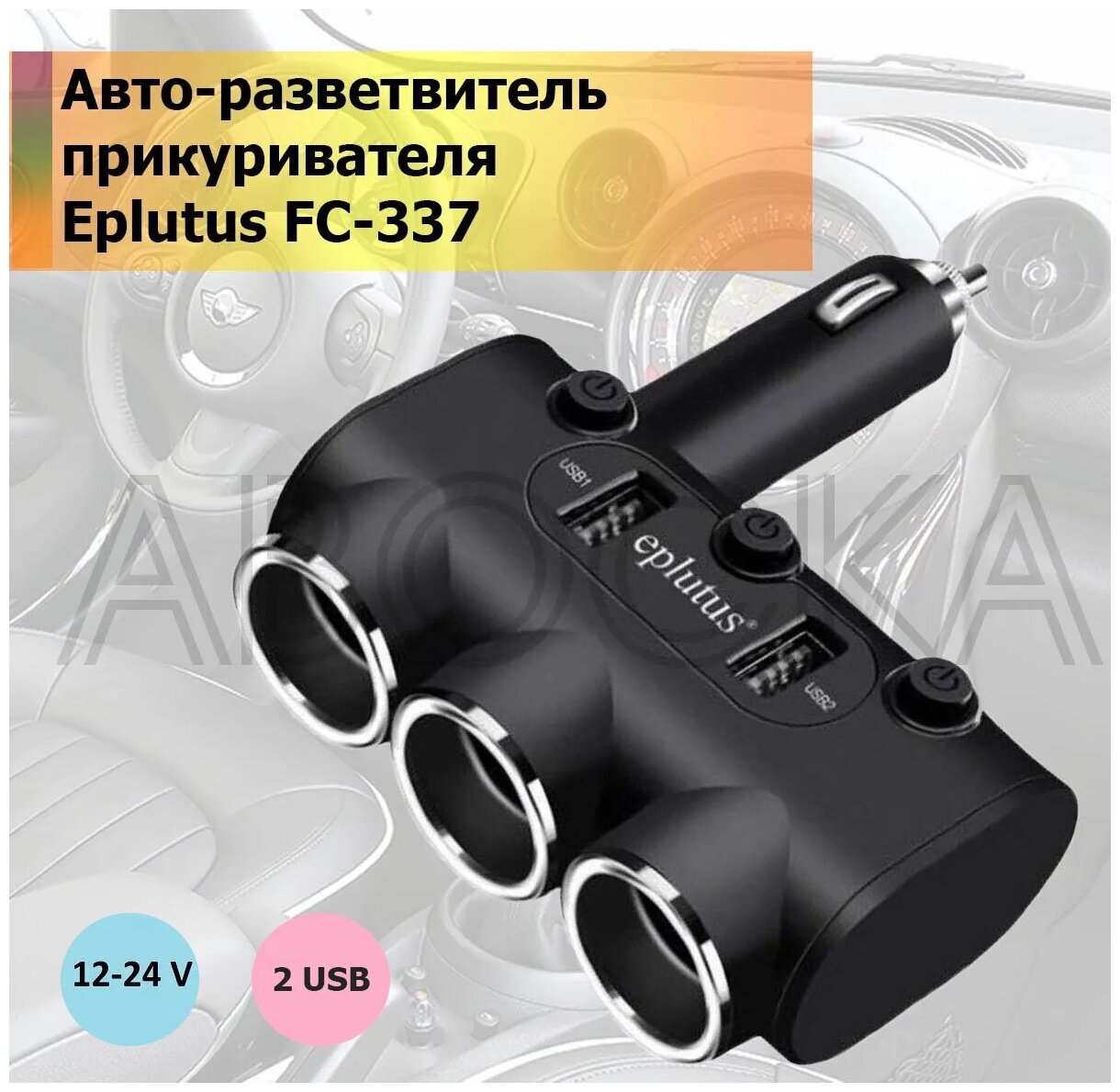 Разветвитель для автомобильного прикуривателя, 12-24 В, B Type