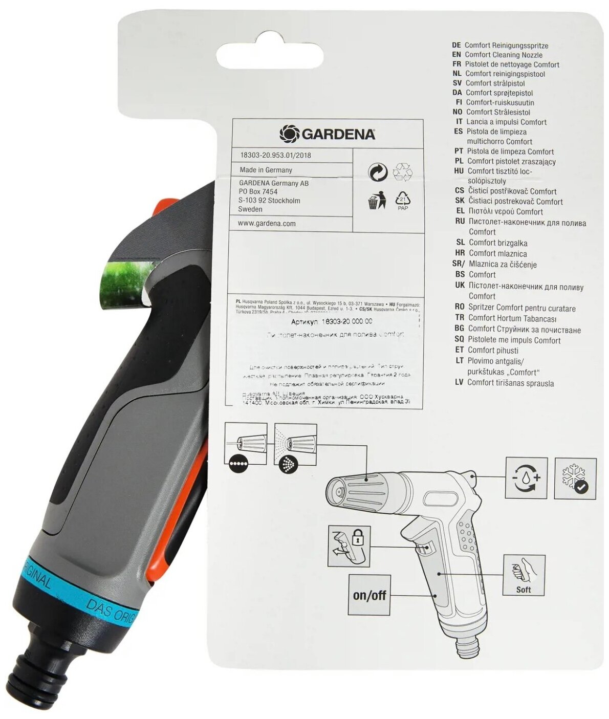 Пистолет-наконечник GARDENA для полива Classic 18301-20.000.00 информация: