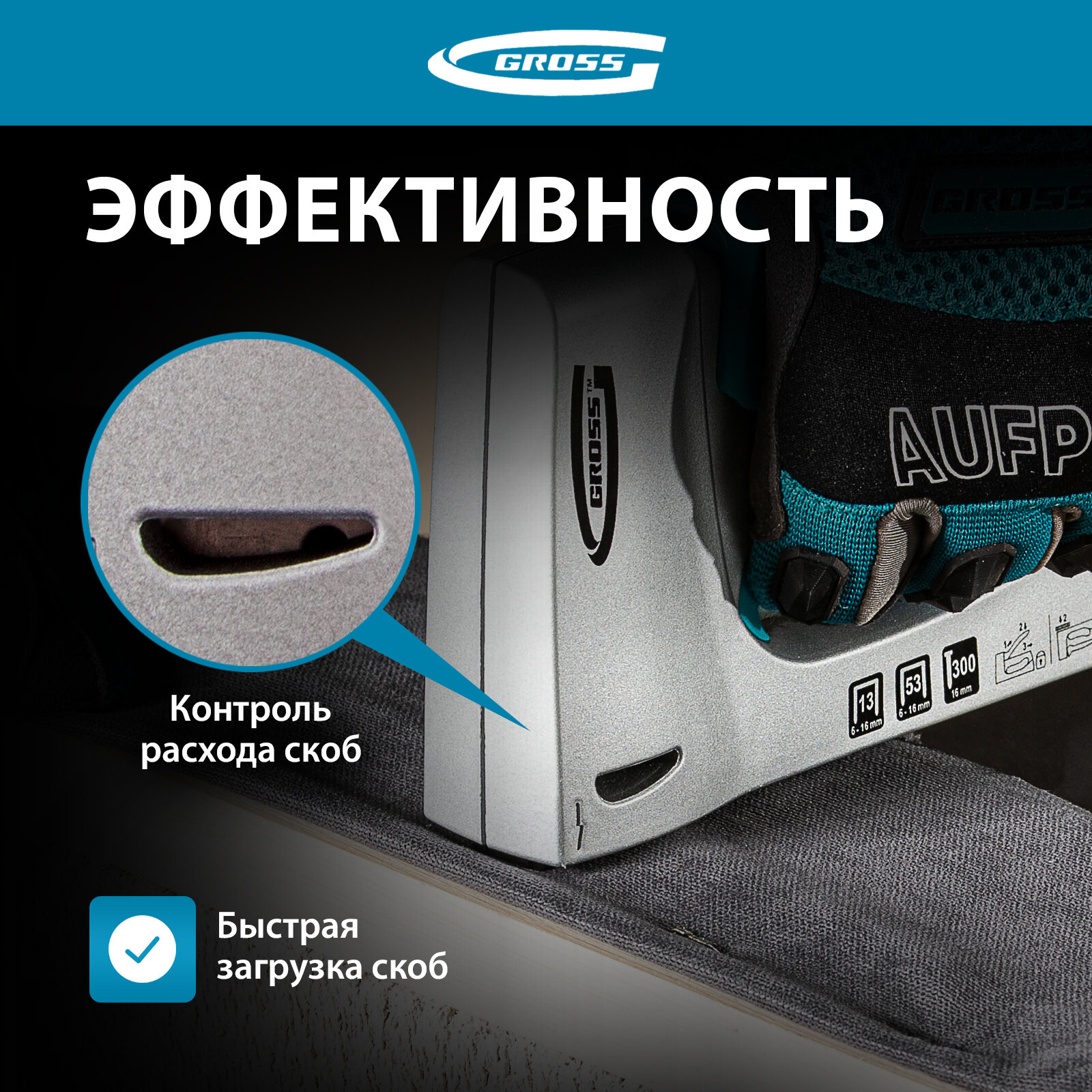 GROSS Степлер мебельный, алюминиевый корпус, тип скобы 13, 53, 300, 6-10 мм// 41001