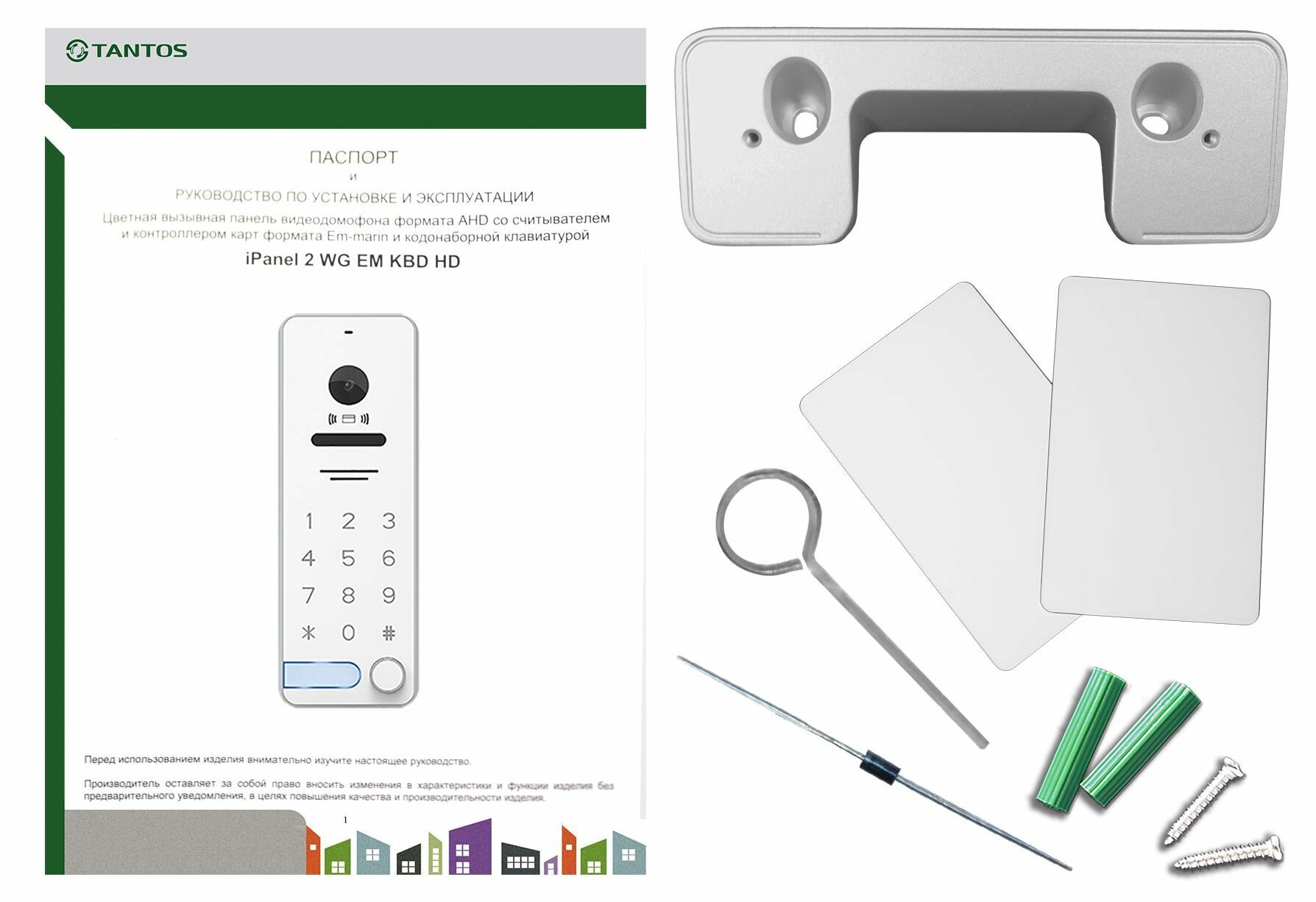 Вызывная видеопанель Tantos iPanel 2 WG (White) EM KBD HD информация: