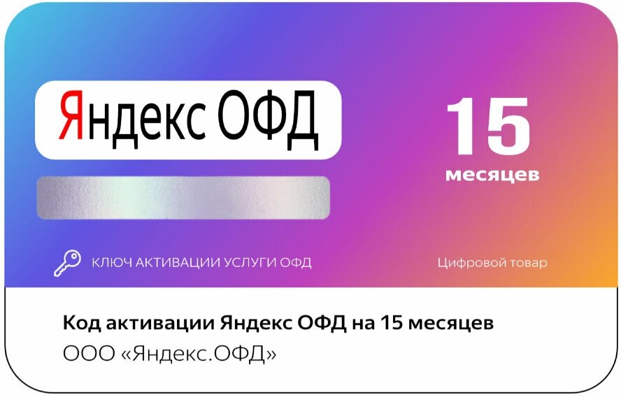 Код активации Яндекс.ОФД на 15 месяцев информация: