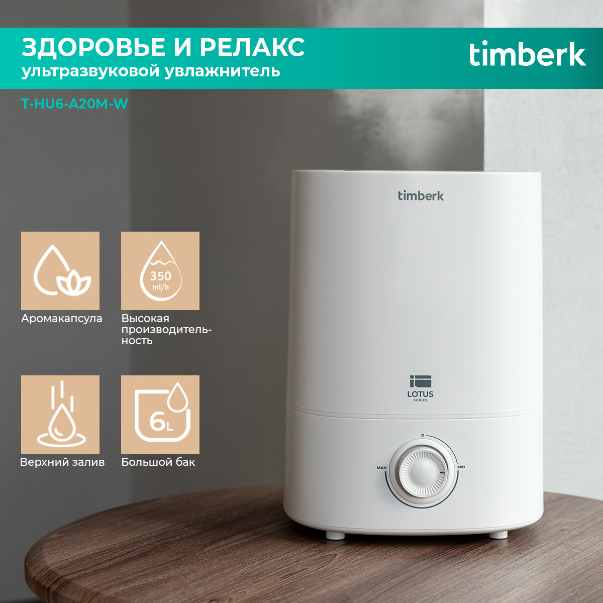 Ультразвуковой увлажнитель воздуха Timberk T-HU6-A20M-W, 6 литров информация: