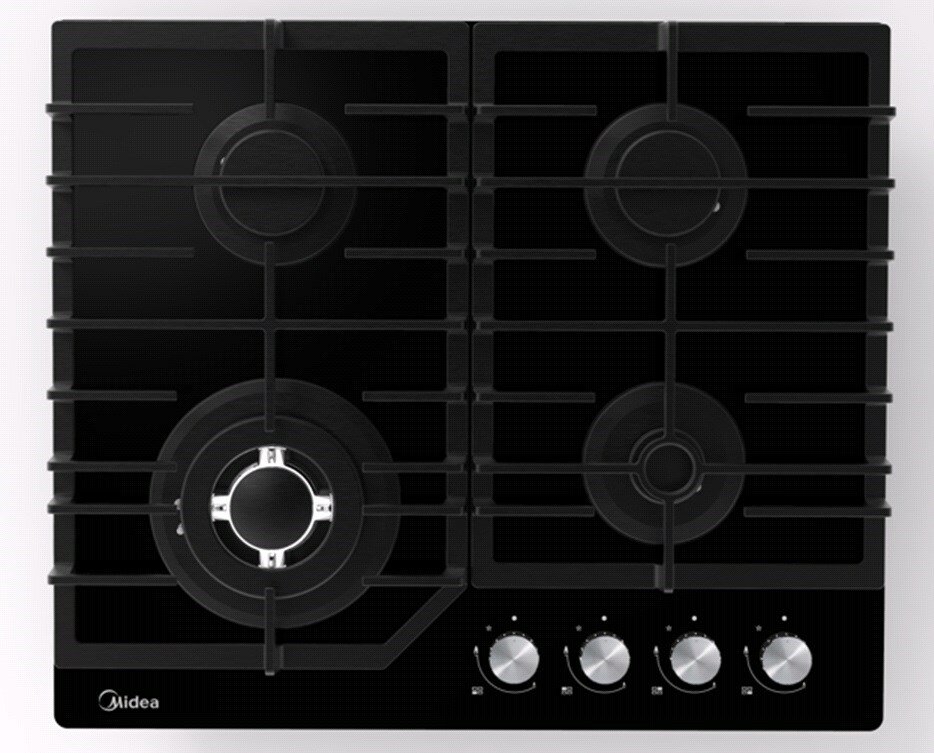 Встраиваемая газовая панель MIDEA MG645TGB, чёрное стекло