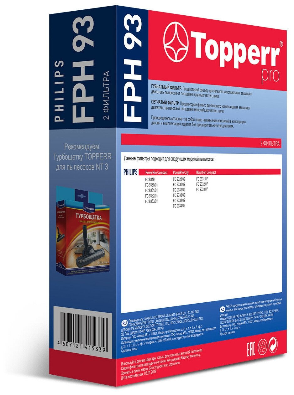 Набор фильтров Topperr FPH 93 для пылесосов Philips, 2 шт. Topperr 4497094